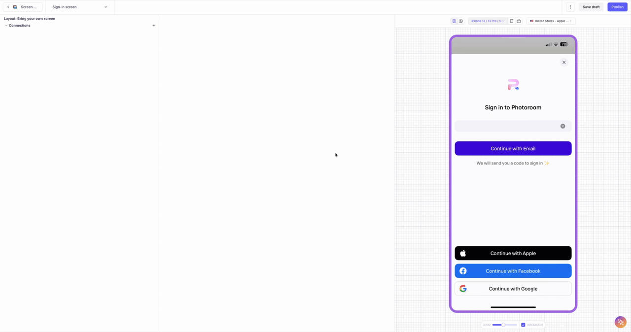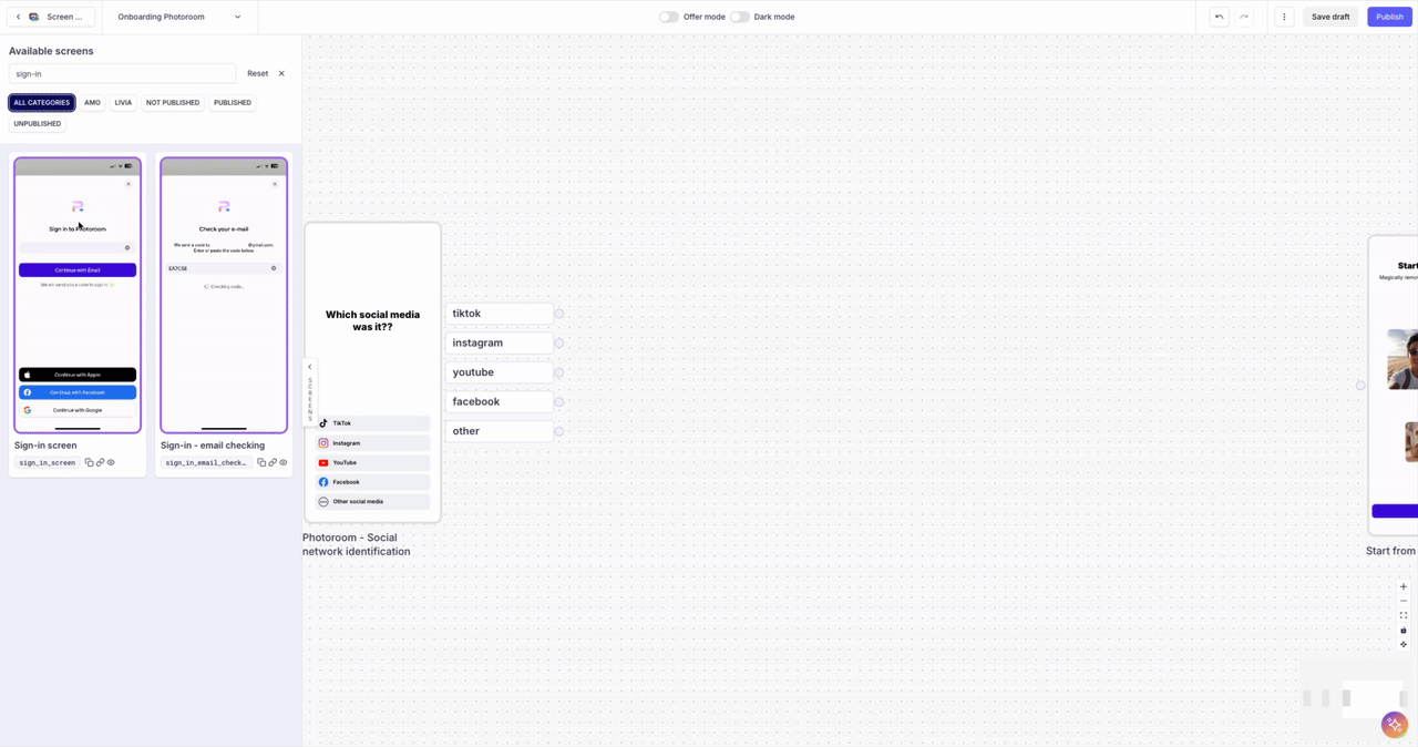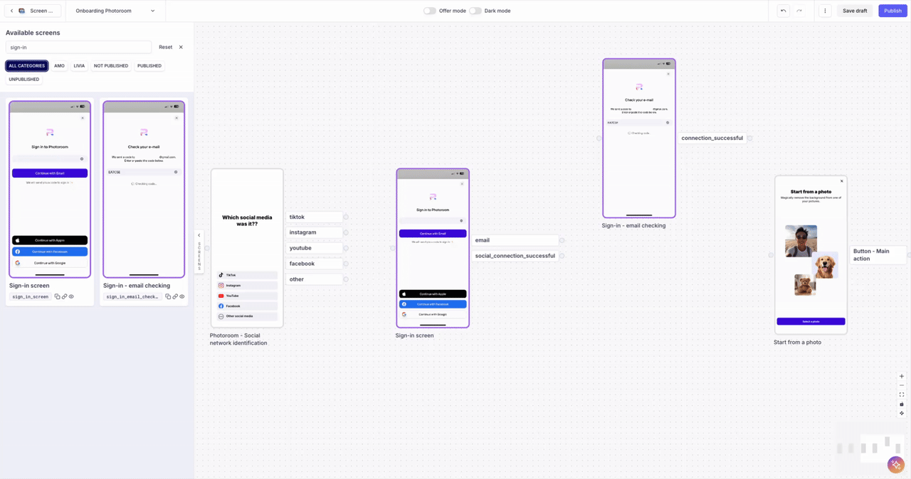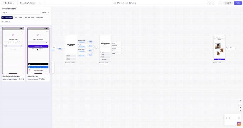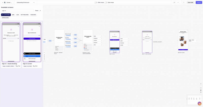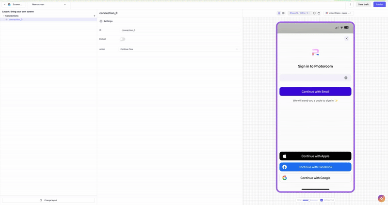 - Publish the Flow so the SDK orchestrates your onboarding sequence according to your no-code configuration.