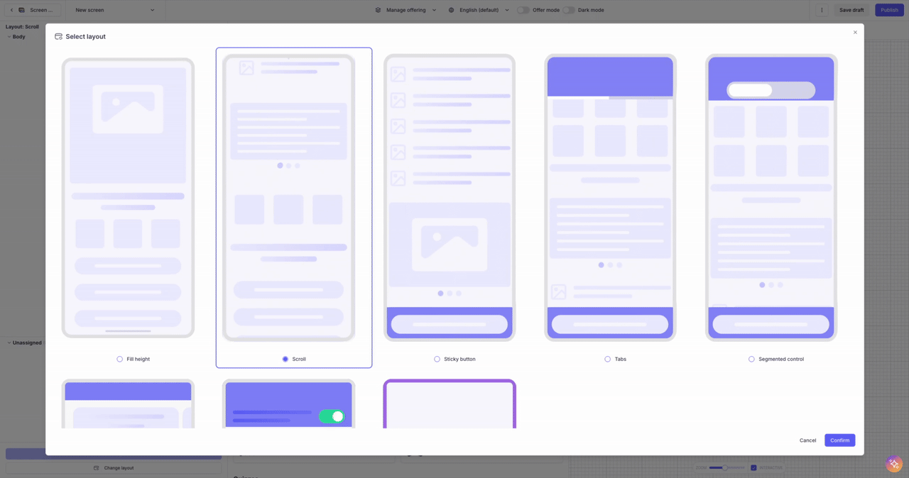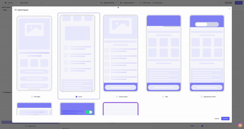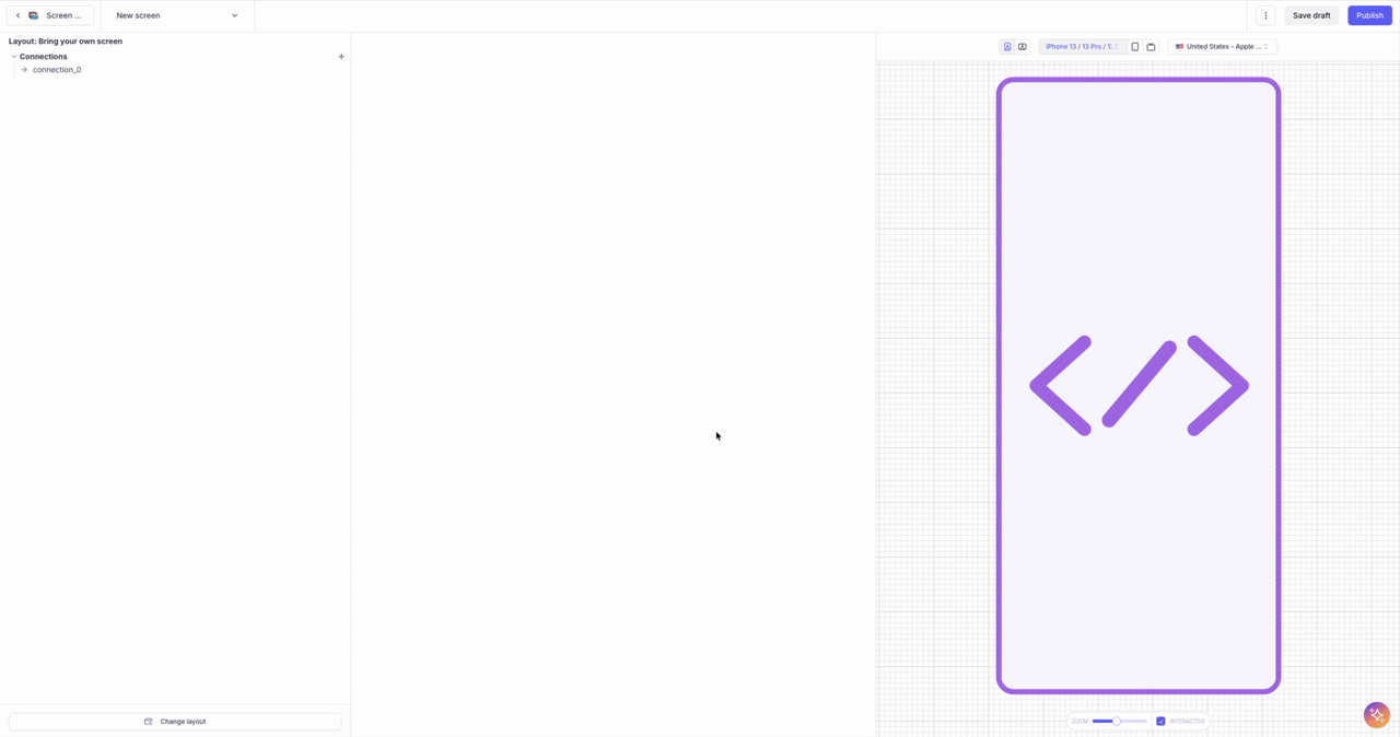BYOS lets you recreate and manage your existing native onboarding flow inside Purchasely by representing each of your native screens as a Custom Screen node. Once mapped, you can reorder, insert, or remove steps directly from the Console — giving you full no-code control over the structure and sequencing of your onboarding while preserving your original UI.