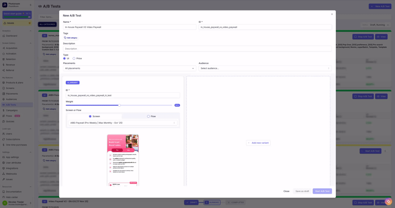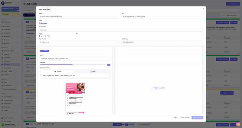 You can also include Custom Screen inside Paywall experiments in A/A test or A/B test scenario.