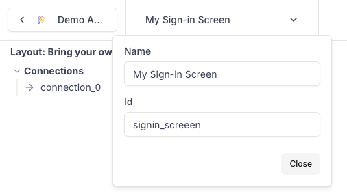 Define the connections (e.g., login_successful, signup, cancel) — these determine the possible exit points for the Screen
