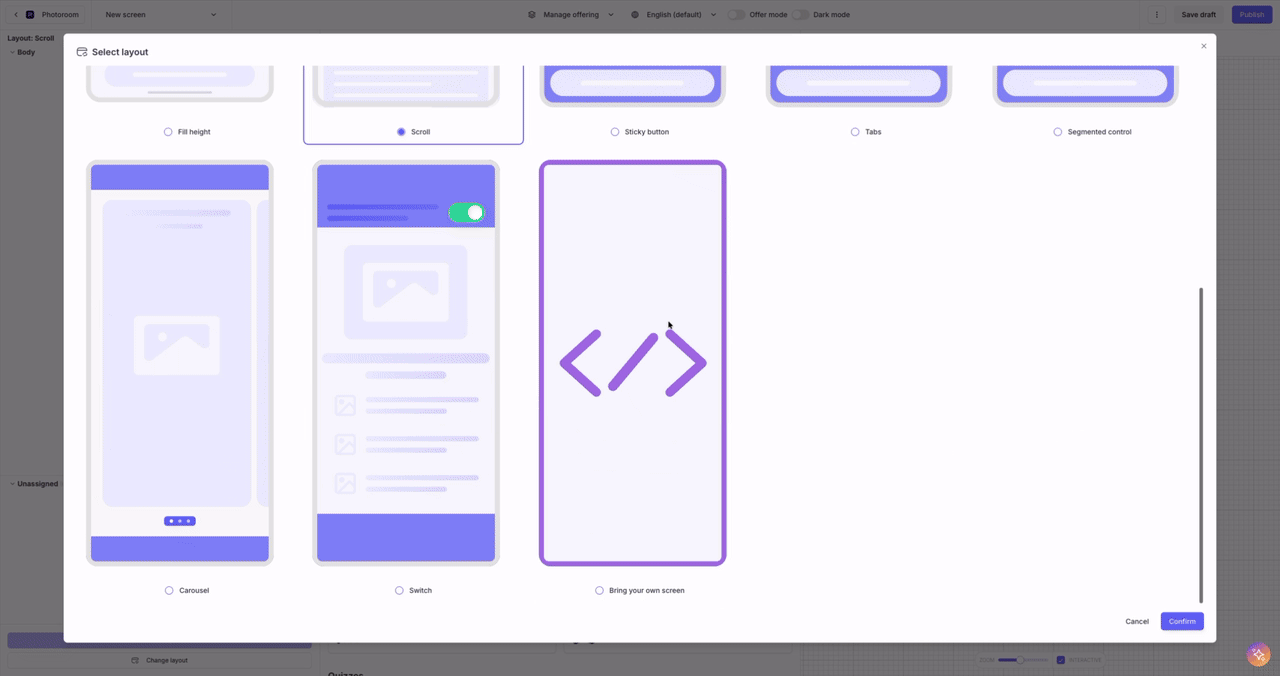 This page provides details on how to configure a Custom Screen in the Purchasely Console