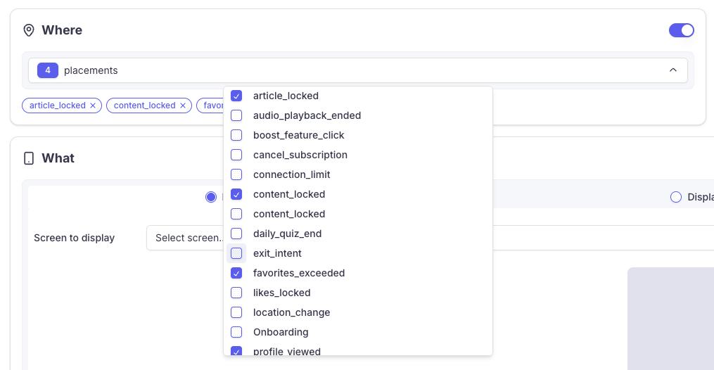 When a Placement is called by your app, the SDK evaluates every campaign targeting that Placement. If the current user matches the campaign's audience, the campaign's screen is displayed instead of the Placement's default rules.