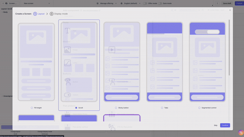 In the Purchasely Console, you can define the Display Mode of a Screen and change it remotely.