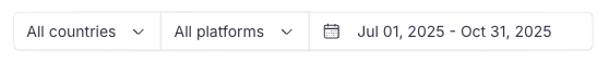 You can use the components in the top right corner to refine the dates and filter the data by platform or country.