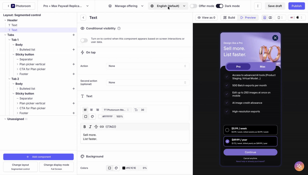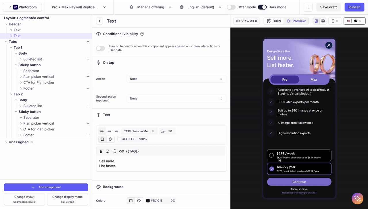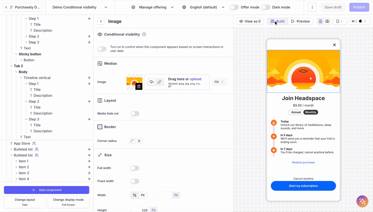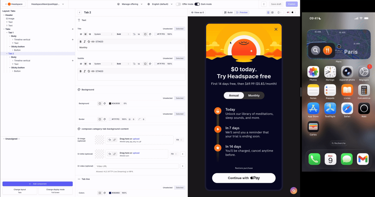 The Preview feature lets you validate how a Screen will look and behave before exposing it to end users. Purchasely provides two complementary preview mechanisms: