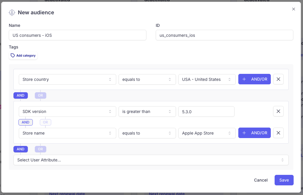 If you have a concern that some users with an old version of the app (SDK version < v5.3.0) might be exposed to this Web Paywal, you can add the parameter in your Audience